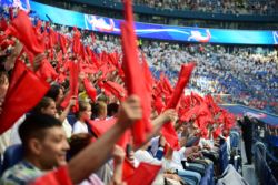 Рекордное исполнение гимна состоялось на петербургском стадионе «Газпром Арена»: гигантский хор — на трибунах, оркестр — на поле. Подготовку к небывалому событию и дирижирование взял на себя Павел Овсянников, музыкальный редактор современного исполнения гимна России.