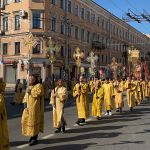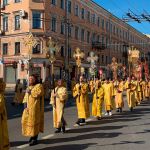 На шествие вышли тысячи верующих во главе с митрополитом Санкт-Петербургским и Ладожским Варсонофием.