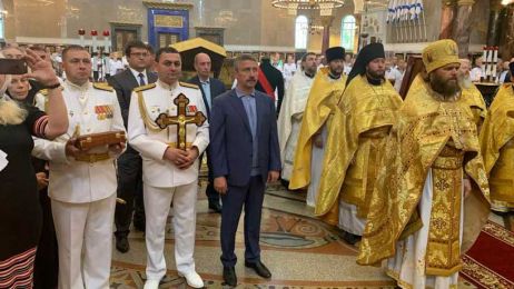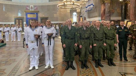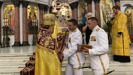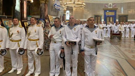 Сегодня в главном храме Военно-Морского Флота, Кронштадтском Морском Соборе, отслужили праздничный молебен. Литургию совершил митрополит Санкт-Петербургский и Ладожский Варсонофий.