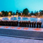 По завершении Богослужения на Якорной площади были зажжены лампады и проведен митинг. 1418 свечей зажглись в память о каждом дне войны. По окончании мероприятия Юнармейцы передали огонь памяти, который был доставлен на катер ВМФ, где была проведена церемония спуска венка на воду.
