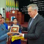 Состоялся торжественный прием в Академии государственной службы Верхняя Мьянма во главе с ректором Чжо Со. Там же был продемонстрирован процесс тренировки будущих выпускников.Наш приезд осветил местный телеканал.