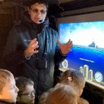 На интерактивной шумопеленгаторной станции ребята проводили поиск кораблей противника, а управляя перископом — дожидались идущего вражеского судна и запускали по нему торпеды. Естественно, виртуально.
