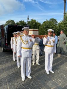 В период с 21 по 27 июля мощи святого праведного воина Федора Ушакова будут находиться в Кронштадтском морском соборе для поклонения военнослужащих и жителей Санкт-Петербурга и Кронштадта великому русскому флотоводцу.