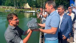 На поверхности водоёма кронштадского Адмиралтейства появился макет Кронштадтской гавани в миниатюре.