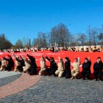 На Якорной площаде перед главным Храмом Военно-морских сил, Кронштадтским морским собором, участники выстроились в слово «ПОБЕДА» и развёрнули масштабную копию Знамени Победы. В акции приняли участие преемники героев Красной Армии – кадеты и школьники, активисты молодёжных общественных организаций, те, кто с гордостью принимает эстафету ответственности за судьбу своей страны, за достойную жизнь следующих поколений.