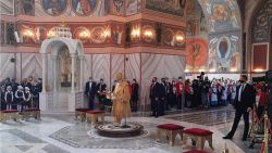 Это первое богослужение в восстановленном храме.