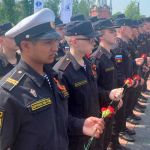 После этого все участники и гости в торжественной обстановке возложили цветы к Стене Славы на Якорной площади…