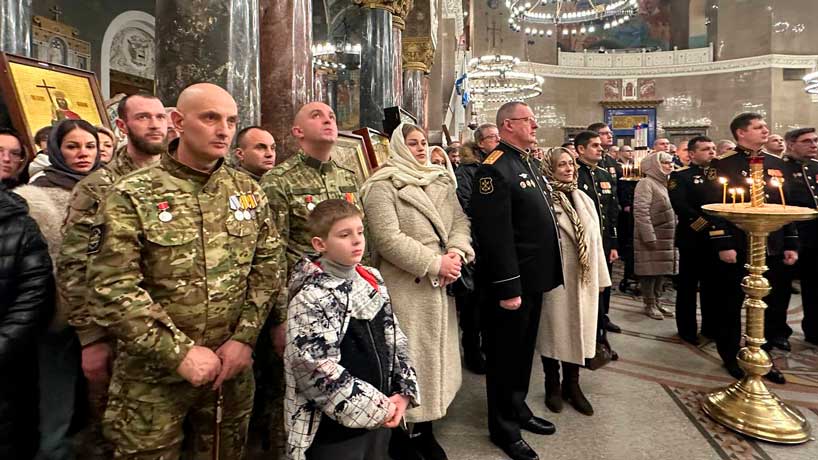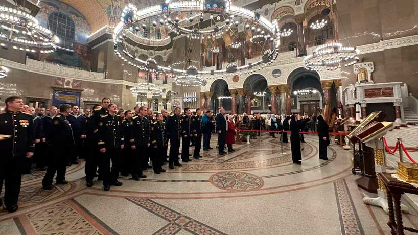 В Кронштадтском Морском соборе состоялась божественная праздничная литургия, посвященная Рождеству Христову. Светлый праздник в главном храме моряков встречали вместе с Главнокомандующим ВМФ Героем России Александром Моисеевым, участниками специальной военной операции, моряками и кронштадтцами.