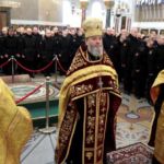 Ну, а после проведения этого воинского ритуала, моряки и их родственники, согласно уже сложившейся традиции, прошли в центральный неф Морского собора — где настоятель Храма-памятника военных моряков России архимандрит о. Алексий (Ганьжин) провел службу и пожелал юношам достойно пройти военные испытания.