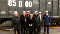 Далее делегация отправилась на Тихвинский вагоностроительный завод. Предприятие открылось в 2012 году, и на сегодняшний день способно выпускать более 19 тысяч грузовых вагонов и более 30 тысяч вагонокомплектов в год. Это одно из крупнейших производств в России и странах СНГ. Завод поставляет вагоны и комплектующие в Северную Америку, Европу и страны Ближнего Востока.