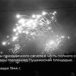 А вот что писал о том салюте ленинградец, писатель, фронтовик Николай Тихонов: «Люди плакали и смеялись от радости, люди смотрели сверкающими глазами, как в блеске салюта возникал из тьмы город всей своей непобедимой громадой. И шпиль Петропавловского собора, и форты старой крепости, набережные. Адмиралтейство, Исаакий, и корабли на Неве, Невский, все просторы города освещались молниями торжествующей радости».