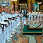 Торжественную литургию посетили глава администрации Кронштадтского района Андрей Анатольевич Кононов, ветераны ВМФ, участники СВО, военнослужащие Ленинградской военно-морской базы, матросы, старшины, мичманы и офицеры ВМФ. Все вместе они вознесли молитвы за мир и благополучие России.