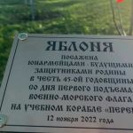 В честь празднования юбилея- экипаж и ветераны корабля при участии юнармейцев ГБОУ школа № 425 им. академика П.Л.Капицы посадили три молодых яблони в саду Кронштадтского докового Адмиралтейства.