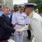 Новоиспечённых офицеров поздравили Главнокомандующий ВМФ РФ адмирал Николай Евменов, врио Губернатора Санкт-Петербурга А.лександр Беглов и, конечно, самые близкие и родные люди. Главком ВМ поздравил выпускников и вручил им кортики, погоны и дипломы, а также отметил, что с получением званий и дипломов учебный процесс не закончился и теперь вчерашним курсантам предстоит быть первыми во всем, как и полагается офицерам флота! Завершилась торжественная церемония посвящения в офицеры праздничным парадом.