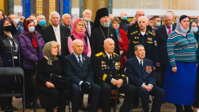 За богослужением молились кавалеры ордена Александра Невского, заслужившие награду в годы Великой Отечественной войны, — генерал-майор Анатолий Климов и полковник Борис Феофанов, ветераны, военнослужащие, а также жители Кронштадта.
