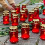 Завершился День памяти жертв блокады Ленинграда вечером на Якорной площади с зажжением свечей и церемонией возложения цветов.