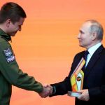 Владимир Путин вручил статуэтку «Волонтёр года»-2022 Владимиру Тараненко – руководителю народной дружины ДНР, который вместе с командой организовывал эвакуационные мероприятия в республике и помогал мирному населению.