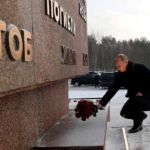 Владимир Путин сначала приехал на Невский пятачок, где за время войны героически погибло более 60 тысяч советских солдат.