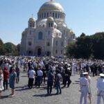 После окончания церемонии в честь молодых офицеров в Кронштадтском Морском соборе состоялся праздничный молебен.